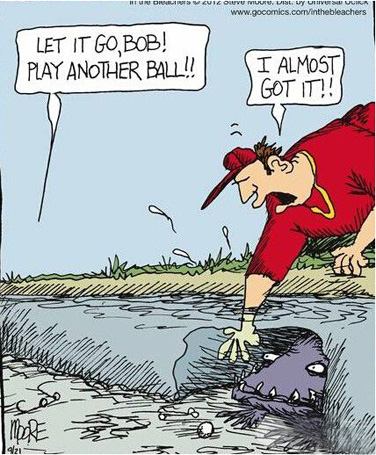 ▲—“鲍勃,别管了!另打一个球算了!”—“我马上就要够着了!”
