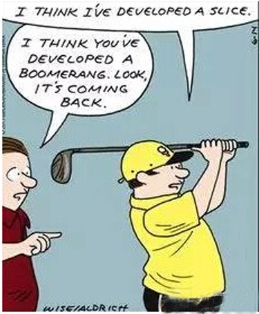 ▲“把球打上球道也不难。只要你对打上哪个球道这事不挑剔就行。”