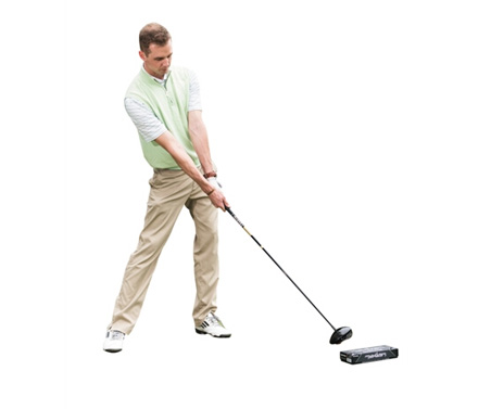 如果连两个Tee也没有的话,那就在唯一的Tee前方随便摆放一点什么东西吧,比如这个黑色的包装盒,也能起到治愈顽疾的作用,改善击球轨迹和击球角度,让球飞得更准更远。