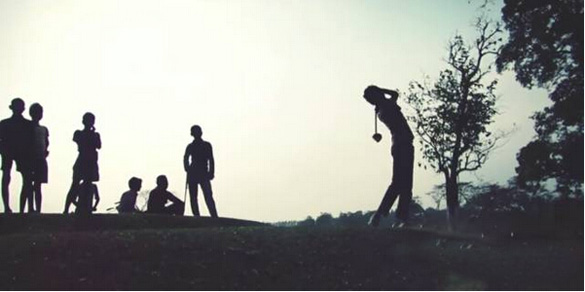 这里有座高尔夫球场,外国来的游客经常在里面打高尔夫,茶农的孩子为他们当起了球童。