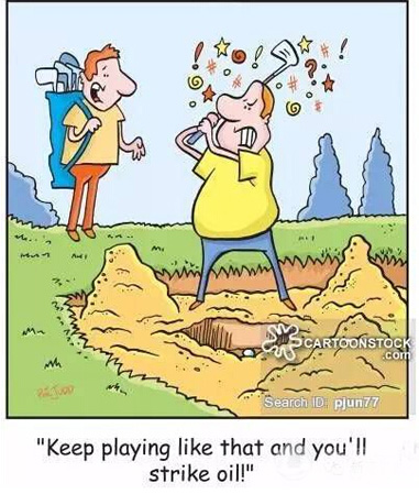 球进了沙坑,换各种位置试挥。这还可以理解,但是打完不直接原路出沙坑,而在沙坑里走了一圈,最后整个沙坑都是脚印。
