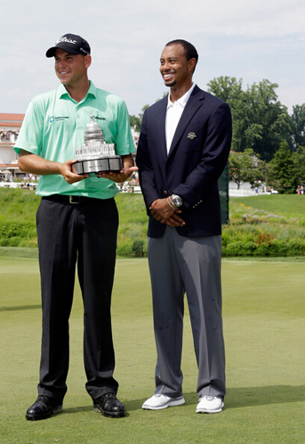 2013年冠军 比尔-哈斯(Bill Haas)与伍兹合影