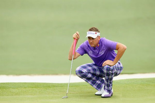 不过,要说紫,佛度也是没有伊恩-保尔特下得了狠心。看看保尔特这一身的紫色,还穿了苏格兰格子裤赤裸裸地在美国大师赛上表示他是英国人: