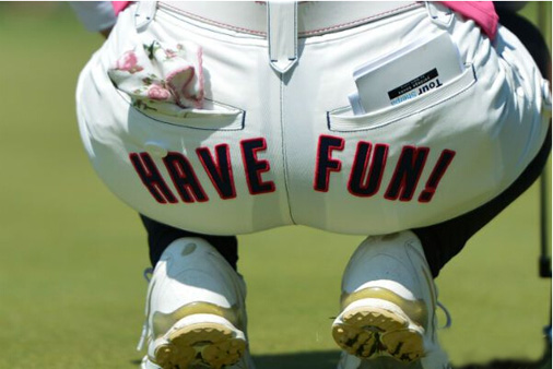 高尔夫是为数不多的不用统一着装的运动,只要在合乎高尔夫着装礼仪的范围内,可以说,你想穿什么就穿什么——当然莱德杯这种团队赛被排除在外,因而“时尚”这个词和这项运动要想摆脱关系也几乎不太可能。