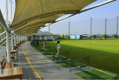 练习区是一个职业球手在走向第一个发球台之前首先要去的地方,你也应该好好利用这里。记住,在练习区你不必担心怎样挥杆击球,相反,这是一个热身和放松肌肉的地方。当你准备好击球,从大角度的球杆开始练习,直到开球木。最后,再练习一下挖起杆。这些能促使你在下场前形成一个更好的节奏和感觉,对正确击球至关重要,而且也可以避免受伤。把你右脚的鞋子变脏吧!