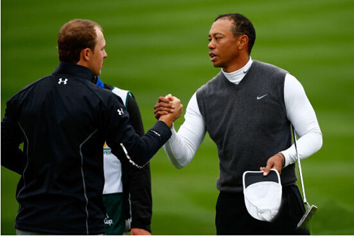 乔丹-斯皮思在凤凰城公开赛上与伍兹握手