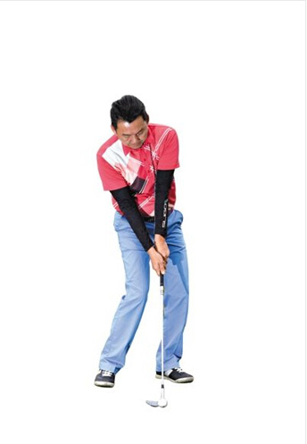 在杆面接触到球后,球员的重心不要有变化,依然在两腿之间,稍稍偏左,值得注意的是,高抛球会用到手腕的动作,但并没有全挥杆一样的手腕动作,这很容易导致球偏离轨道。