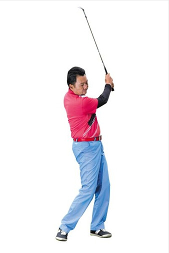 高抛球的上杆和普通击球的上杆并无多少不同,但握杆有个小的技巧,与正常切球的握杆相比,高抛球的握杆要尽可能地采用掌心朝下的姿势,这是为了下一个动作做准备——尽可能地避免关闭杆面。