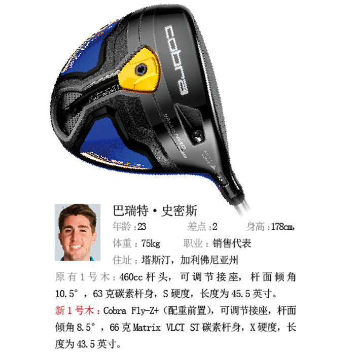 体验:巴瑞特·史密斯说:“我的老1号木在几年前很流行,那时很多职业球员都使用的是那款球杆,但是当我发现使用更短、更硬的1号木可以打出更少倒旋的时候,我彻底放弃了坚守原有球杆的想法。我感觉每一次挥杆都比原来远了20码。”