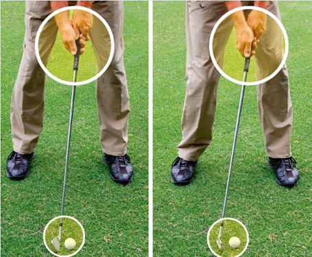 如果握杆不够平衡、正确,而杆面仍然端正,那么当击球的瞬间双手会自然调整成较自然的平衡状态,那么这时杆面会偏离目标区域。