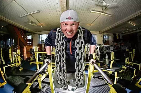 米勒用沉重的铁链来训练,以增强肌肉