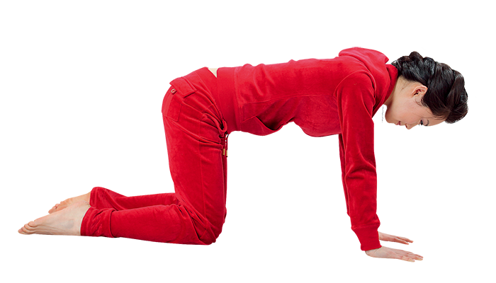 1. 跪立在垫子或草地上,双膝分开与肩同宽,大腿与地面垂直,两手支撑在肩部下方,两手臂相互平行,尽量垂直于地面,手肘相对,眼睛看地面。