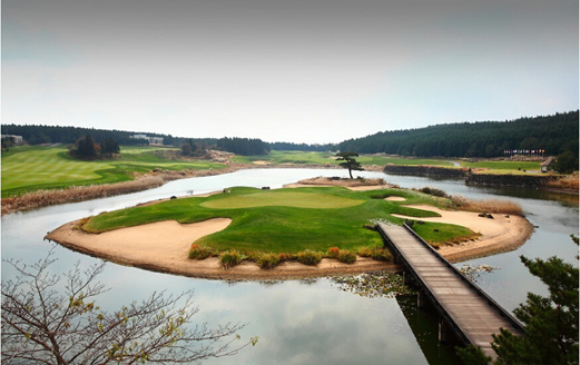济州岛上最出名的球场莫过于九桥高尔夫俱乐部,这个球场是纯会员制的球场,据说已经有500个会员,80%是韩国人,入会费高达50万美金,而且需要会员推荐才能入会。