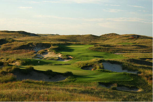 在简单的外表下,沙丘球场展现出鲜明的设计构思主线:在现代美国这片人迹罕至的内陆荒野中,打造纯正经典的林克斯球场,让球手享受最大的乐趣。我们在现场看不到一棵乔木,只有保留下来的原始沙丘,而球道和果岭就在这样原始的地形上翻越,由此,一些球道和果岭起伏较大,一些则相对平缓,形状多种多样。