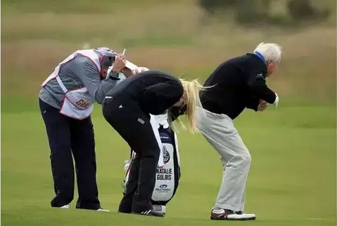 2、遇到慢打者保持风度。在球场上,难免会遇到前一组球员打得太慢的情形。在前组球员没有完成球道击球或者果岭推杆还处于危险距离时,后组球员千万不要意气用事击下一杆。如果遇到这种情况,球员首先要保持自身风度,然后告知球场巡场员提醒慢打者,商量是否可让后组球员先行。