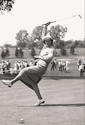 LPGA的创办人之一蓓比-札哈里亚斯(Babe Zaharias)是一位传奇人物。她是一名全能型的运动员,擅长高尔夫、篮球、棒球、跳高等多项运动,总共获得过各种运动比赛的82枚冠军奖杯,还曾获得过奥运冠军。其中赢得过41个高尔夫的冠军,包括10个大满贯赛冠军。1938年底,27岁的蓓比与一位摔跤运动员结婚。婚后的十几年,她依然驰骋在赛场上。任何事情都没有过让她停止过对高尔夫的狂热,直至死亡。1953年,42岁的蓓比被确诊为结肠癌,并经受了癌症手术。但是1954年她又卷土重来,并一举赢得了自己的第10个大满贯赛冠军——美国女子公开赛。不幸的是,第二年她的结肠癌复发,但她仍然还参加了8场赛事,并拿到了2个冠军。1956 年,无情的疾病还是夺走了她坚强的生命,享年45岁。