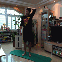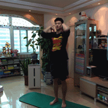 动作要领:双脚与肩同宽;单手托在耳后,向一侧转身,另一只手臂尽量向后伸直;过程中,双脚不要动哦!