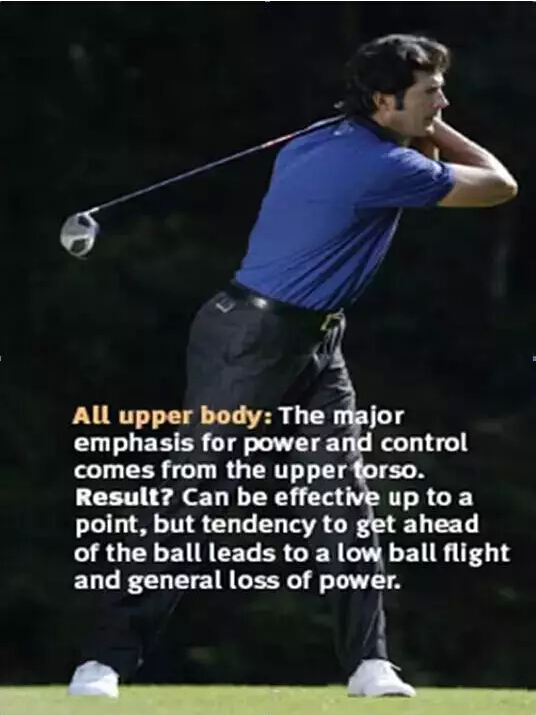 虽然你肯定不想照搬上面我提到的几位球手的上杆动作,但你一定要看出其中的门道。李·特维诺的环形上杆动作和他本人一样独特,整个过程中脚踝和膝盖的转动使得双臂和球杆在击球的瞬间实现斜协调统一。上杆时肘部停在身体前方,让你能自由释放球杆。弗雷德-卡普雷斯也是一个很好的例子,他的上杆动作带有强烈的个人风格,角度相当大,同时稍稍偏离一般路径,但是仍然少不了膝盖的动作。