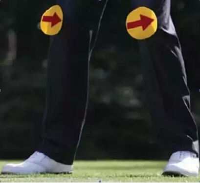 这项练习能让你感觉到我想传达的意思。将一根球杆置于身后,然后转动身体,同时移动重心,采取上杆姿势。这样(通常发生在上杆动作尚未结束之前)你就能感觉到脚踝与膝盖共同作用,将身体的能量重新移至目标处。把球杆放在身后让你能够清晰地感觉到上杆至下杆之间的过度。一旦你掌握了这项练习,随着双手及两臂的自然下落,你就能自然而然地创造延迟释放的效果——最有效的增加球速的方法。