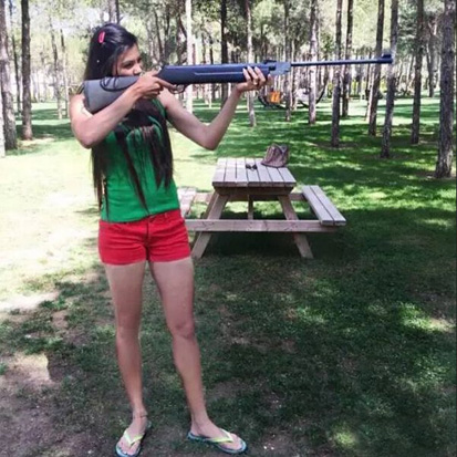 有时她还玩一玩射击。