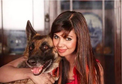 她还有一只可爱的宠物狗。