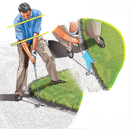 当你的球如此接近沙坑边缘时,为了抓住任何逃离沙坑的机会,需要让球垂直地飞出
