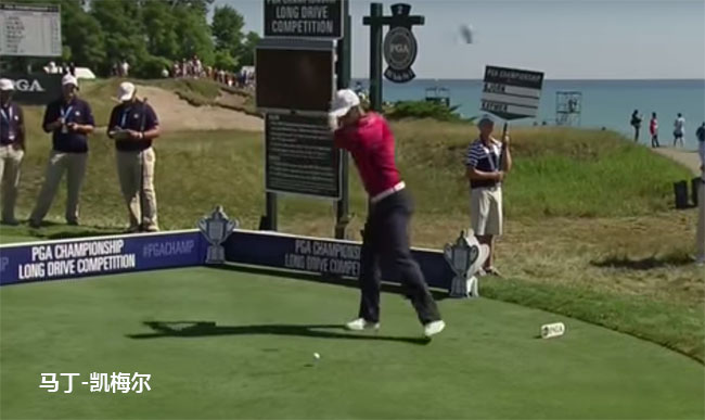马丁-凯梅尔使用了“球场古惑仔”的打法跑动中打球,距离大概快300码,但也没能打上球道。
