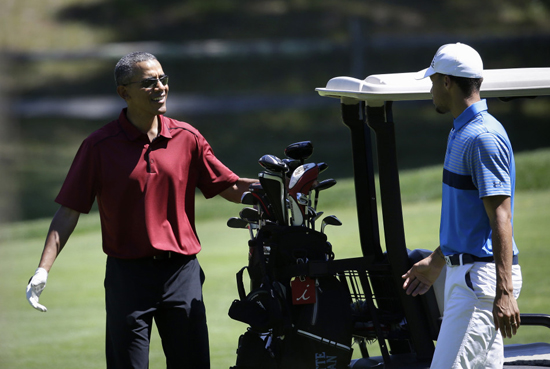正在马萨诸塞州玛莎葡萄园岛度假的美国总统奥巴马闲暇之余与NBA球星们打了一场高尔夫球。继周三与NBA全明星球员雷-阿伦(Ray Allen)和阿隆佐-莫宁(Alonzo Mourning)打完球后,奥巴马周五下午又与2015NBA常规赛MVP史蒂芬-库里(Steph Curry)、库里老爸戴尔-库里(Dell Curry)及雷-阿伦又打了一场。