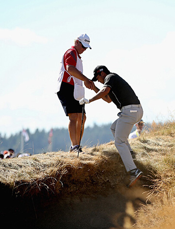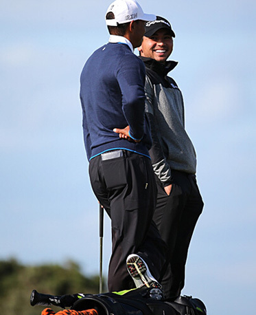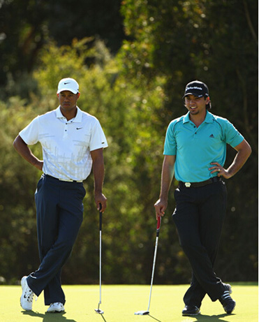 大满贯赛的练习轮中,戴伊常常同组老虎伍兹。
