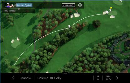 几个月前的2015美国大师赛中隆重推出的“Track”栏目,就将冠军“小飞侠”斯皮思等知名球手每一洞的击打轨迹以数字化的方式来呈现,即使比赛已经过去很久,我们还是能随时重温他在奥古斯塔第18洞漂亮的小鸟球。