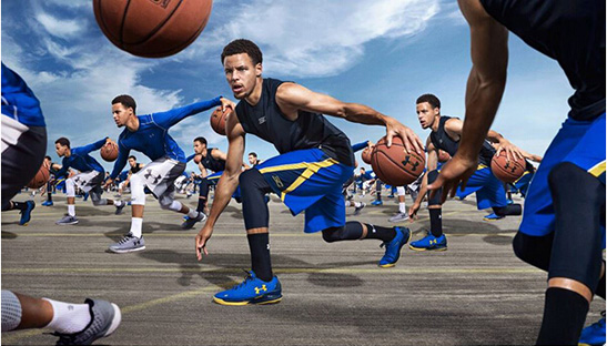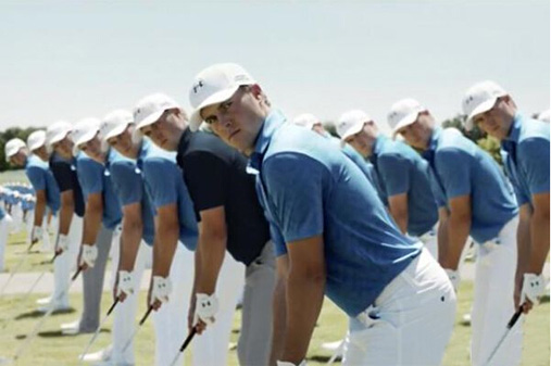 在Under Armour最新的时长一分钟的宣传片中,合作主演是NBA总决赛的MVP,同时也是非常著名的高尔夫爱好者斯蒂夫-库里(Steph Curry),还有一位享誉全美的芭蕾舞明星米丝蒂-科普兰(Misty Copeland)。广告片中,成千上万的克隆斯皮思挤满镜头,他们用铁杆将球打到高高的天空中。如果这是在大师赛上,这些电脑合成的斯皮思的翻版已经将球打到了离球洞10英尺的地方,留下小鸟推。