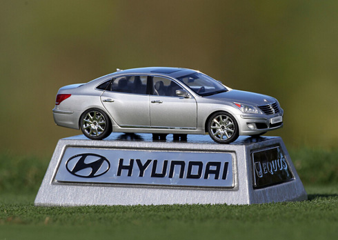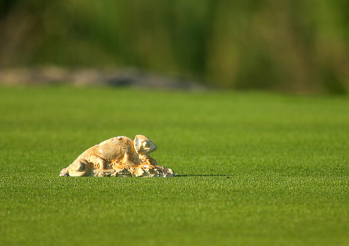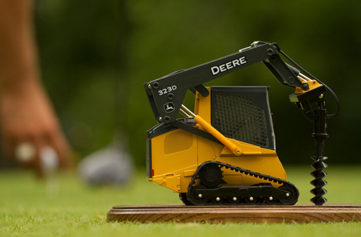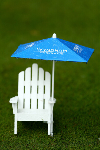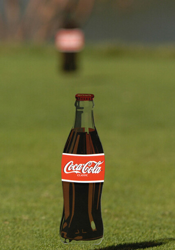 高尔夫赛场上的梯台发球区标识大都颇有创意,有汽车模型、可乐瓶子、飞机模型、雨伞、购物车等等。这些五花八门的精致小玩意为比赛增添了乐趣,也让参赛选手们愉悦挥杆,开心比赛。