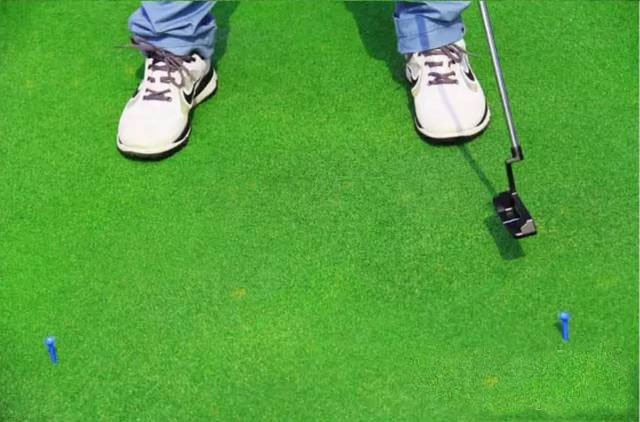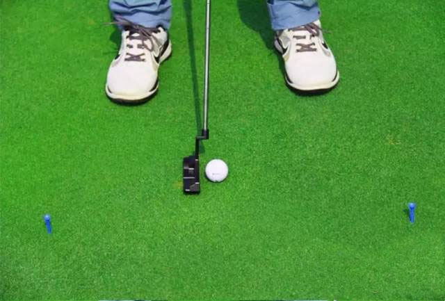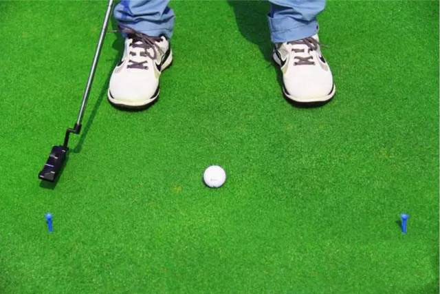 地面上球梯中间的通道表明:推杆杆头的挥杆路径应该与目标线平行