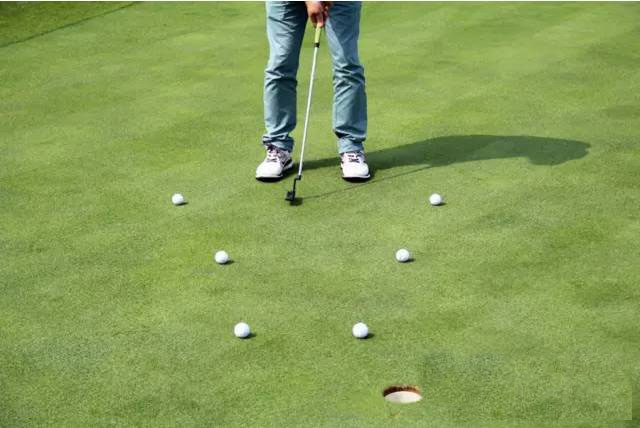 以2颗球为一组,分别距离球洞15厘米/30厘米/45厘米练习推杆