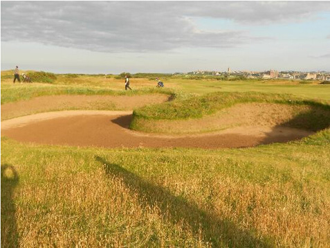 位于圣安德鲁斯老球场第14洞球道中央、深达十英尺的“地狱沙坑”(Hell Bunker)大约有330平方码,对于球手来说就像“黑洞”一般。尼克劳斯曾打进过这个沙坑,试了四次才从这里逃脱。来到这里真的是“炼狱”一般的感觉。