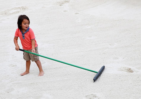 还知道玩后将沙子抹平