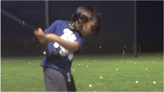 戴伊的妻子艾莉上传了一段戴伊陪儿子练球的视频。视频里,戴伊是儿子达什的球童兼教练。达什每次用铁杆挥出去一个球,戴伊就会很快帮他放上另一个球,还不忘给他赞扬和鼓励。练习场上,已经散落着几十个小白球了。