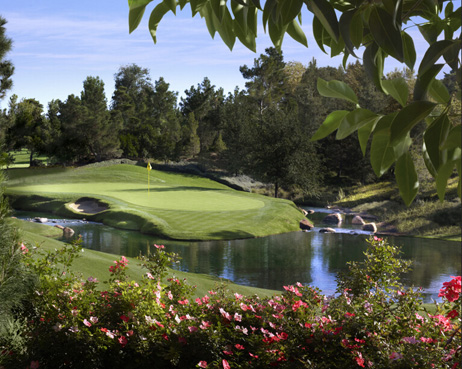 球场极具特色,摆位十分考究,以拉斯维加斯经典建筑作为背景,配上幼白色沙坑和整齐的灌木丛润色,形成强烈的视觉反差。另外,一条长达一英里的人工溪流被充分地发挥在了十二座球洞中。尤其是在长达498码的四杆洞17号洞中,水流正好从球道右旁蜿蜒至果岭后方,需要球手在挥杆前对方向和力道做出充分的考量,否则力道稍大,球便有可能滚过果岭而落水。