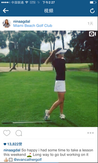 虽然之前挥杆差还各种暴躁、发脾气,但也并没有让她沮丧。阿格戴尔周一又发布了一段视频,这次她很明显进步了许多。
