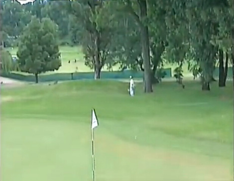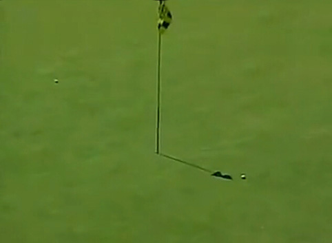 2006年常青巡回赛-安联锦标赛,一个长173码的三杆洞上。老将福齐·策勒的开球落入果岭边的长草中,小白球在长草中停顿了数秒之后,突然启动,并像装了导航一样滚进洞杯。