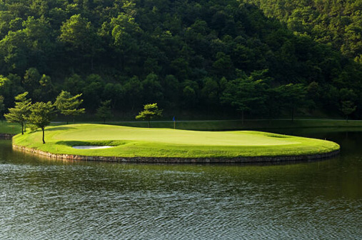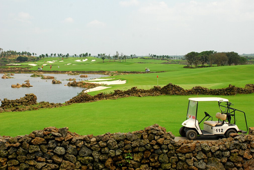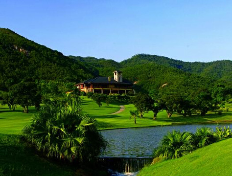 九龙山高尔夫俱乐部由美国排名第三位的著名设计师Ron Garl负责设计,2003年投入使用。其占地面积2700亩,利用自然景观与人工填海筑岛建成27洞球场,分别为庄园球道、峡谷球道、海景球道。有青山 空谷、峡谷怪石、森林鸟语、大海波涛、岛屿仙雾等自然景观。