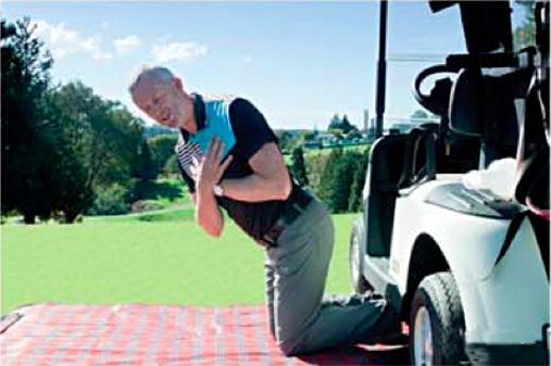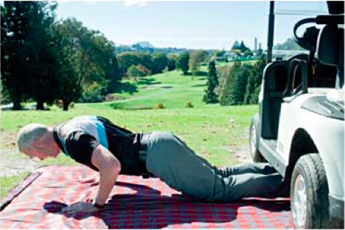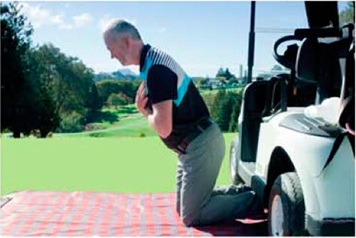 你的踝关节要固定住。高尔夫球车可以帮你固定住踝关节,当然如果你在家里的话,矮一点的桌子或者你的家人可以帮你完成这个动作。