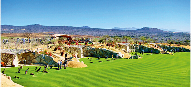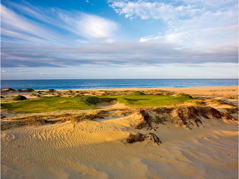 按照拉夫三世的说法,在迪亚曼蒂打球,你只会身处三个场景之中:冲着大海打球,沿着大海打球或背向大海打球。拉夫三世将18洞蜿蜒布局于大面积沙丘地当中,实际上,球场建成之前,那里生长着大面积的树形仙人掌。例如,四杆洞9号洞便如蛇形般一样穿梭在树形仙人掌林中。