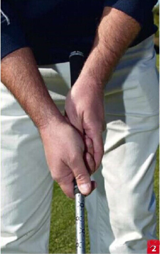 向下握球杆能够帮助你形成一个正常的推杆姿势的站位,并且保持对球杆的控制