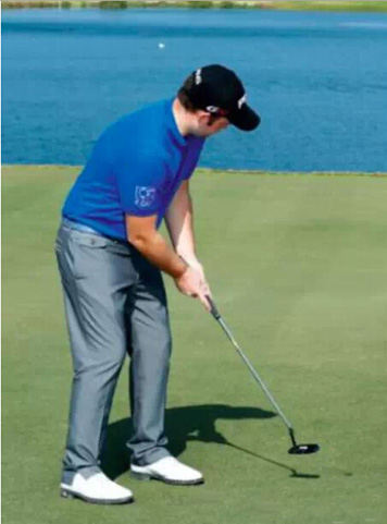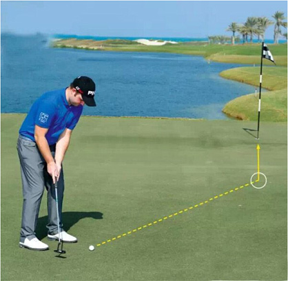 虽然这听起来有些不可思议,但是对于推击线路上有很多拐折的长推杆来说,最重要的一点就是忘记球洞的位置。你的目标点应该是你预计的球会发生拐折的地方。