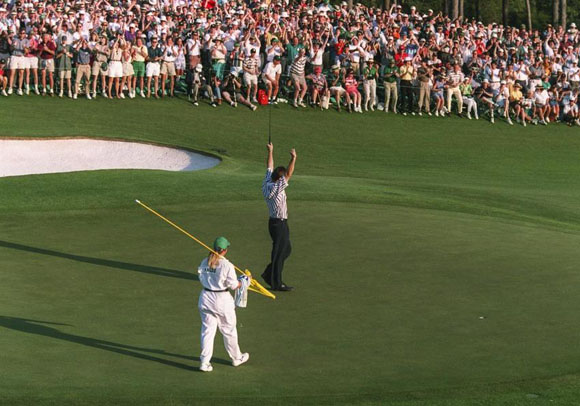 16、1996年大师赛获胜穿上绿夹克