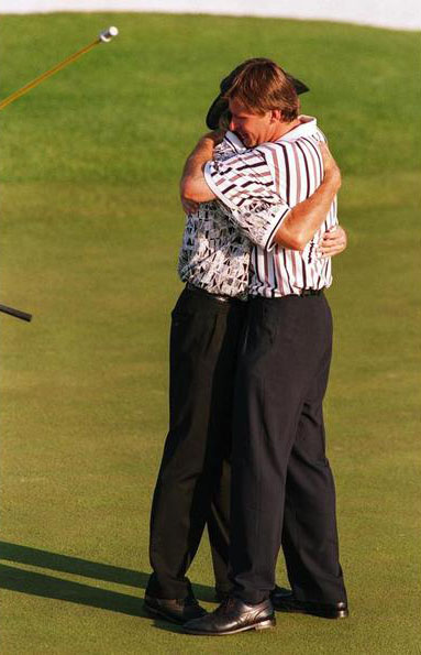 15、96大师赛后拥抱格雷戈·诺曼