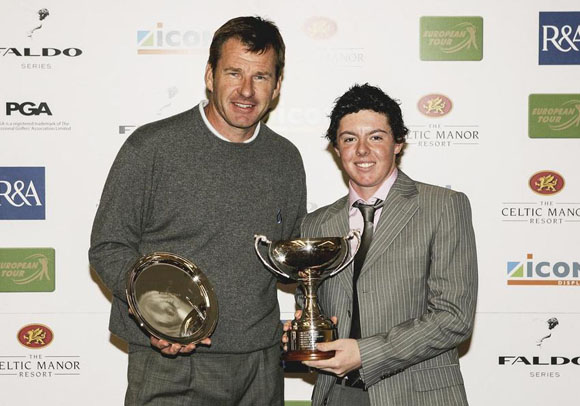 22、麦克罗伊在费度青少年系列赛获胜后举着奖杯与费度合影