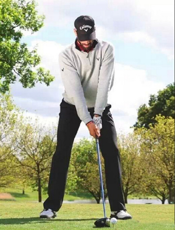 首先,可以模仿奎罗斯比常规站位更宽一些的站位姿势,这可以为挥杆提供稳定的基础;更加靠前的球位,帮助他拥有更加倾斜的肩膀角度,帮助他在击球的时候拥有更加向上的角度,让球产生更高的起飞角度和更远的飞行距离。