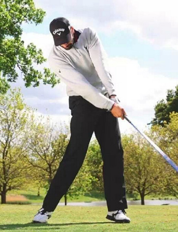 充分的送杆动作,身体重心转移到左侧